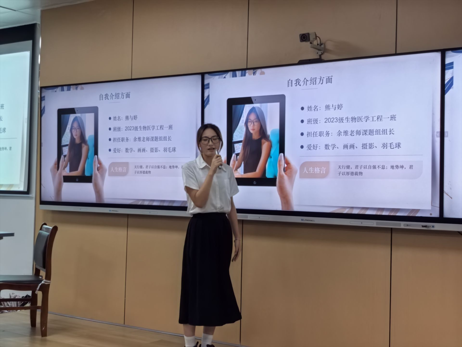 竞选答辩活动严格按照国家奖学金评选政策执行,经个人申报、班级选拔、学院复核等环节,最终确定9名答辩现场,本次竞选严格遵循国家奖学金评选政策,经个人申报、班级民主评议、学院复核等环节,最终确定了9名候选人进入答辩环节。候选人依次登台,结合PPT展示,围绕思想品德、学业成绩、科研实践、学科竞赛、社会服务等方面进行陈述。从医学影像技术的科研探索,到生物医学设备的创新设计,再到志愿服务,同学们全面展现了“精研医工、求实创新”的专业素养与综合能力,彰显出新时代医工学子的精神风貌。评委团依据候选人综合素质测评成绩及现场表现,进行了全面、公正的评审。