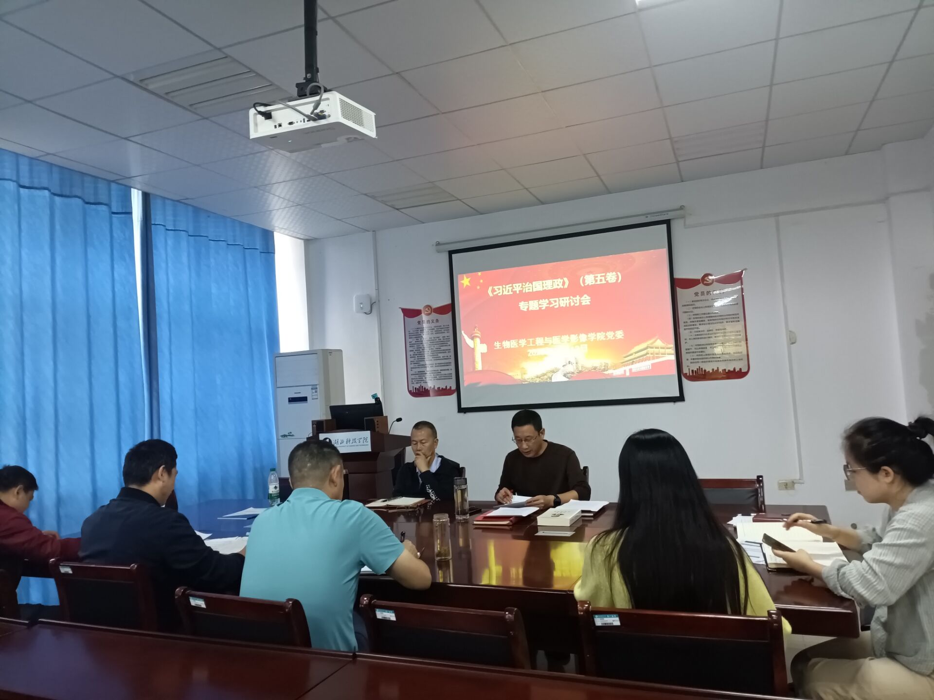 10月13日,生物医学工程与医学影像学院党委召开2025年度第八次理论学习中心组学习会,围绕”学习习近平经济思想,服务湖北省支点建设大局,加快推动学院教育高质量发展”主题开展深入学习研讨。学院党委书记潘盛信主持会议。
