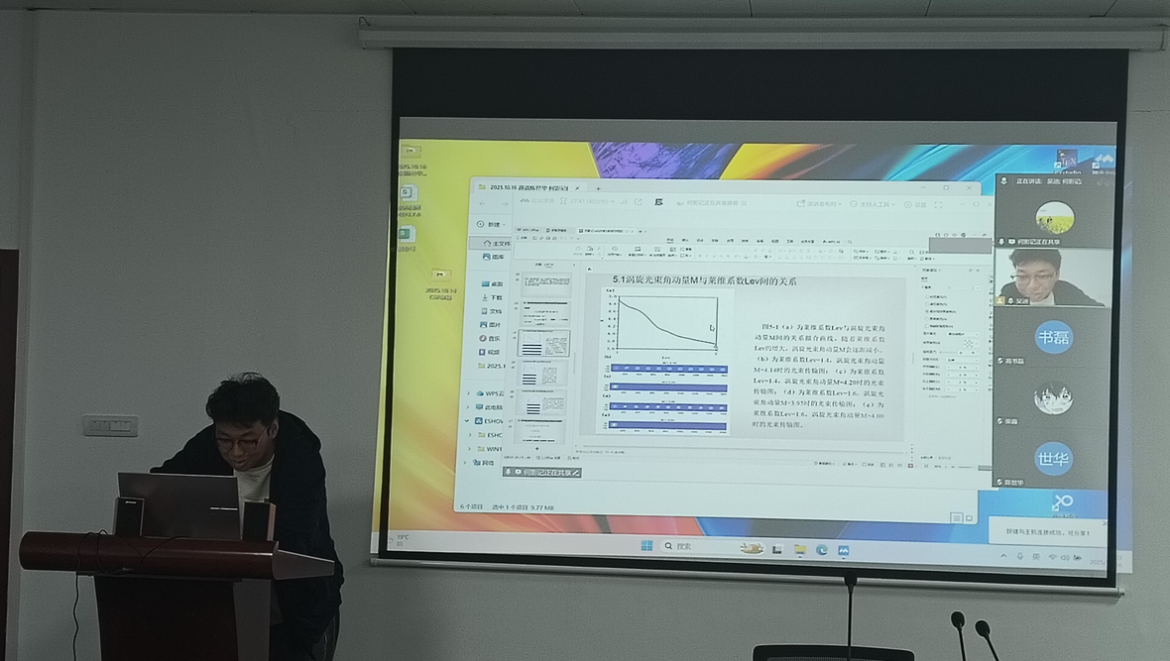 何影记教授以“新型光孤子特性”为题,系统介绍了其团队在光场调控领域的最新突破。研究利用铌酸锶钡晶体的光折变效应,首次观察到Swallowtail光束形成的稳定可控多结构光自陷及离轴孤子,实现了对光传输轨迹的精确控制。通过调控抛物动量参数,团队成功在晶体中诱导出数量可扩展、位置可控制的复杂光生波导,为可重构集成光子器件提供了全新制备方案。