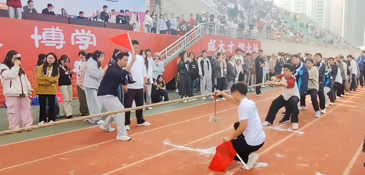 “一二!—二!”整齐划一的口号声响彻云霄,那是团结的呐喊,是力量的凝聚。队员们咬紧牙关,汗水顺着脸颊不停地流淌,但他们的目光始终坚定,没有丝毫退缩。他们双脚稳稳扎根地面,身体后仰,重心下沉,每一块肌肉都紧绷着,迸发出强大的力量!最终取得2025年运动会拔河比赛季军。