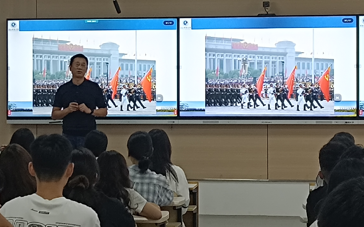 潘书记以今年9.3阅兵为切入点,深入浅出的讲解,使新生了解到中国共产党在国家建设和发展中所起到的中流砥柱作用。通过对党史的回顾,新生们深刻认识到党的伟大成就来之不易,激发了他们对党的崇敬和向往之情,增强了新生的爱国主义情怀,为新生带来了一场意义深远的思想盛宴。