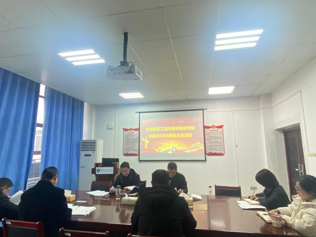 2026年1月26日上午,生物医学工程与医学影像学院党委领导班子2025年度民主生活会在学院会议室召开。会议紧扣年度主题,聚焦强化理论武装、加强作风建设、深入查摆问题、严肃开展批评与自我批评,旨在进一步增强领导班子凝聚力、战斗力,为学院事业高质量发展提供坚强政治保证。学院领导班子成员参加会议,学院机关主任、各党支部书记列席会议。会议由学院党委书记潘盛信主持。